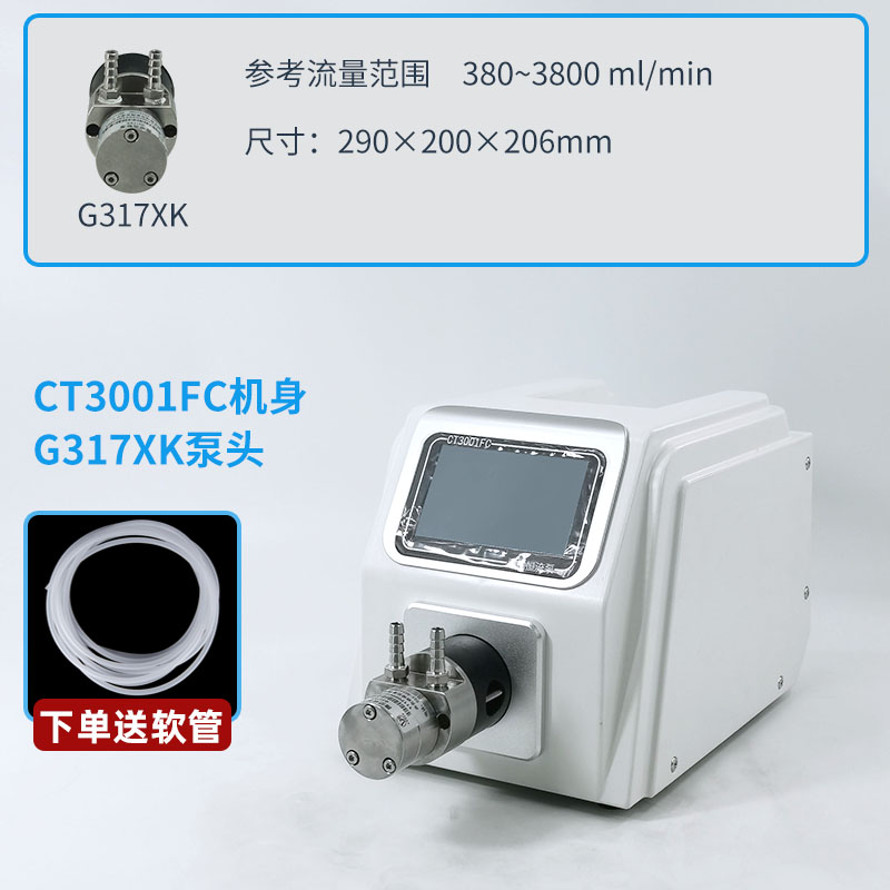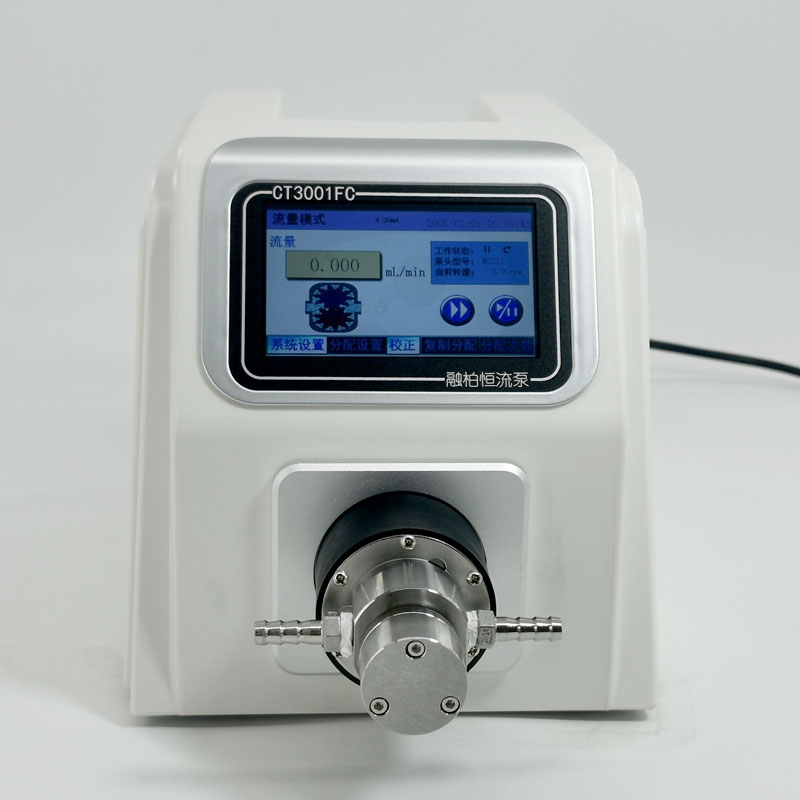 CT3001FC微型齒輪泵可提供78-2200(mL/min)的流量范圍。采用4.3寸真彩觸摸屏,可在流量或者分配模式下運行,同時還具有復制分配的功能,最多可以存儲60條分配參數,方便用戶調用。